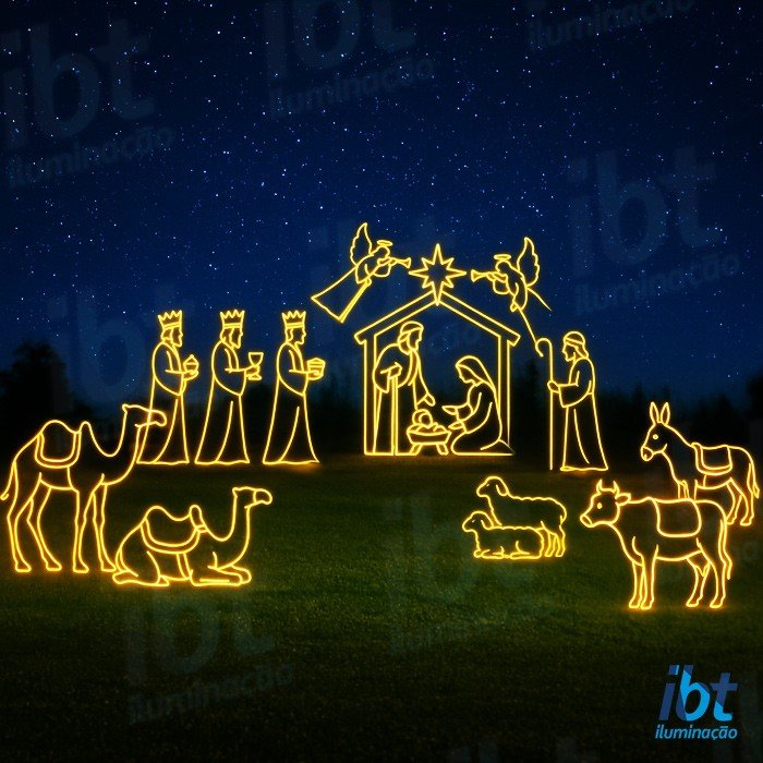 Figura Natalina Luminosa para Fachada e Jardim – Presépio Completo